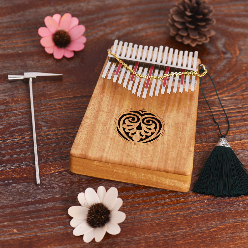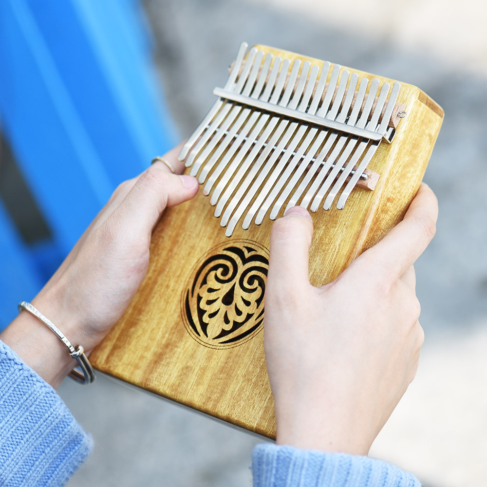 Калимба – музыкальный инструмент с очень интересным строением. Тонкие пластинки-язычки закреплены поверх специального резонатора – их размеры влияют на тональность, а возможный звукоряд зависит от количества «клавиш». Дополнительных приспособлений не требуется – во время игры инструмент держат в ладонях или укладывают на колени. Удивительной чистотой звука калимбы напоминают музыкальные колокольчики, но сами мелодии получаются на удивление насыщенными и многогранными. Хотите услышать голос настоящей африканской саванны? Тогда вам просто необходимо купить калимбу!