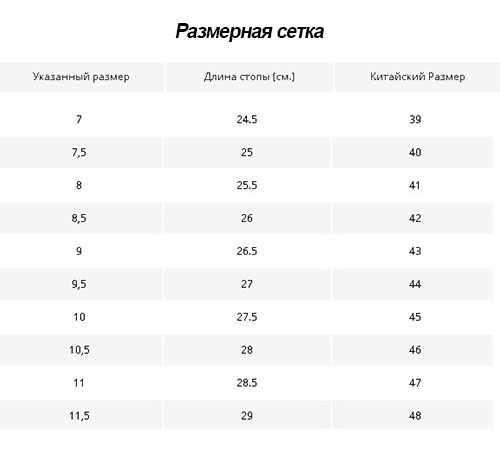 Размер: 7 – 10,5 (см. таблицу размеров)