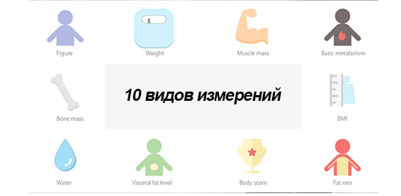 Также весы могут измерить десять данных о вашем организме, таких как вес тела, масса костей, уровень воды в теле, мышечная масса, базовый метаболизм, уровень жира, уровень висцерального жира и т. д.