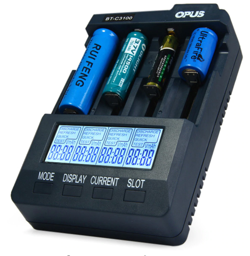 4 независимых слота для зарядки заряжают аккумуляторные батареи разных типов и размеров и с разной емкостью одновременно