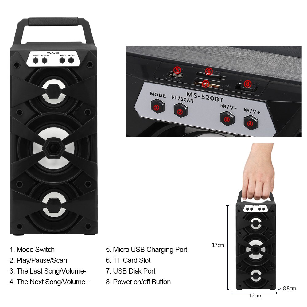 BT speaker отлично подходит для активного отдыха. 8 Вт громкоговоритель, динамик обеспечивает кристально чистое качество звука при прослушивании музыки. USB порт и TF карта слот предоставляет вам больше способов наслаждаться музыкой. Цветовые Светодиодный Фонари добавляют атмосферу на вечеринках, рассейте свои страхи, когда будете спать в одиночестве, можно использовать как ночник.