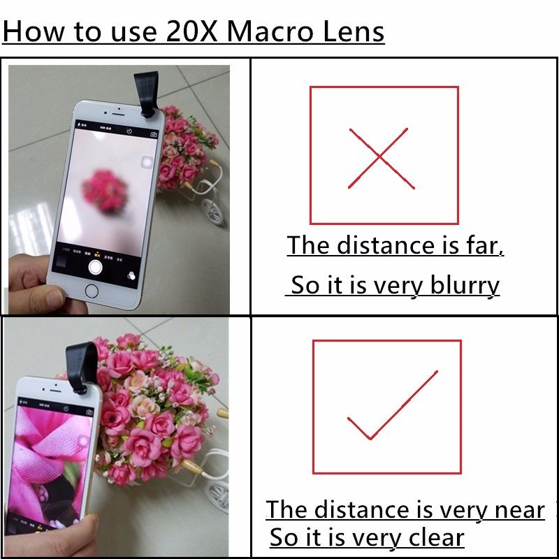 Универсальный съёмный макрообъектив. Подходит большенству типов мобильных телефонов, размер линзы телефона не более 9,5 мм в диаметре. Подходит для большинства телефонов, легко и удобно в эксплуатации.