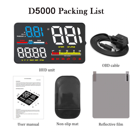 1 * Основной блок HUD 1 * OBD2 кабель 1 * нескользящий коврик 1 * светоотражающая пленка 1 * Руководство пользователя 1 * Оригинальная коробка |