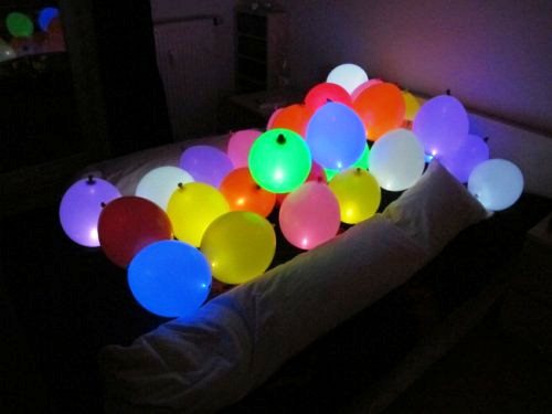 Светодиодные шары можно использовать как обычные шарики, надуть их воздухом и разбросать по комнате. Еще очень хорошая идея заказать маленькие разноцветные шарики со светодиодами, надуть их воздухом и бросить в воду в ванной. Романтический вечер, или просто поднятие настроения при заходе в ванную комнату обеспечен.